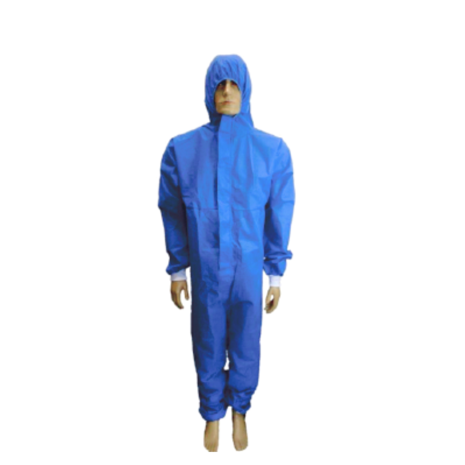 Macacão fabricado em SMS trilaminado, indicado para uso em salas limpas, CME hospitalar, ambientes controlados, cabines de pintura, entre outros.