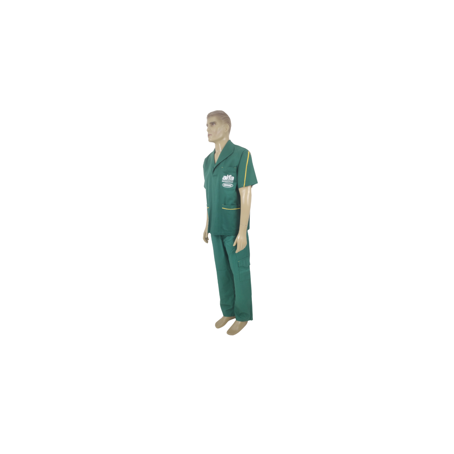 Conjunto confeccionado em brim leve 100% algodão, ideal para ambientes que exigem conforto térmico, durabilidade e apresentação profissional. Composto por jaleco de gola padre e calça com cós elástico.