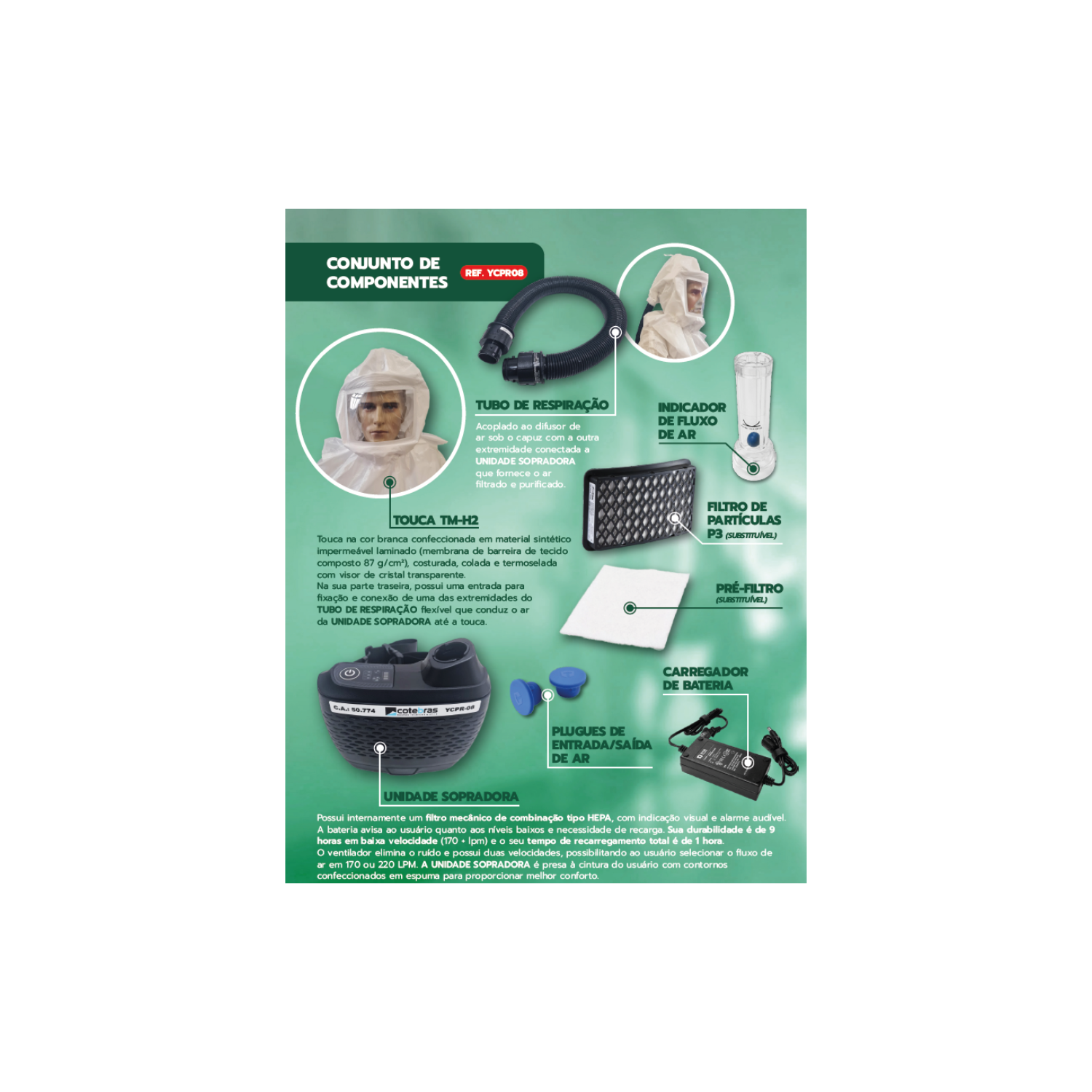 Unidade sopradora: Motor com filtro primário e P3, responsável por captar e filtrar o ar.